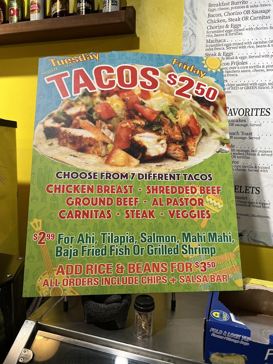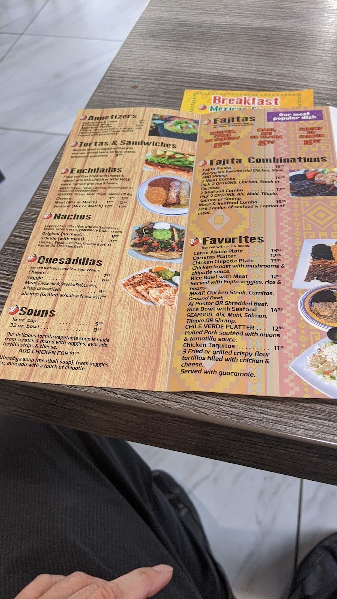 Seafood lovers have options such as Aguachiles, Camarones Al Mojo de Ajo, Shrimp Ceviche, Mexican Shrimp Cocktail, and Camrones A la Diabla, while tacos and quesadillas-from Chicken Taco to Shrimp Quesadilla-offer quick, flavorful bites. Combination meals, including the Seafood Taco Combo (2 or 3), Taco & Cheese Enchilada, and Meat Tamale & Chile Relleno, give a sampling of the best flavors. A la carte choices like Chile Relleno, Meat Enchilada, and simple staples like Rice 8 Oz and Flour Tortillas ensure flexibility. For dessert, 2 Churros with Caramel & Chocolate or Flan w/ Caramel & Chocolate provide a sweet finish, complemented by beverages including Fountain Soda, Specialty Drinks, Bottled Drink, Jamaica, and Lemonade. Overall, the menu at Las Fajitas Restaurant demonstrates a thoughtful mix of traditional favorites, seafood options, and customizable plates that cater to both casual diners and those seeking a hearty, flavorful meal.